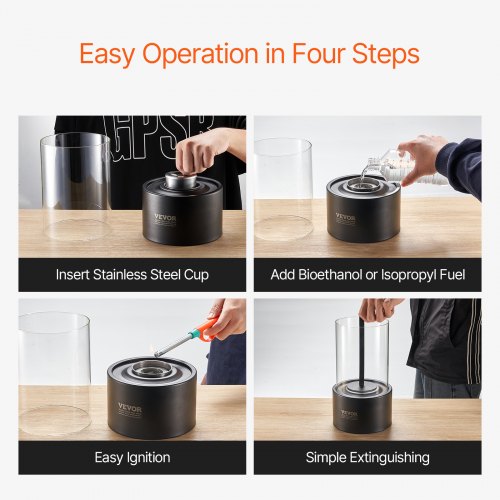 VEVOR Feuerstelle, φ160x285mm Tischkamin aus Metall, Dekoration für drinnen & draußen, Feuerschale für Reinigungsalkohol, Smores-Maker mit Glas, Feuerkorb für Terrasse & Balkon mit Feuerlöscherabdeckung