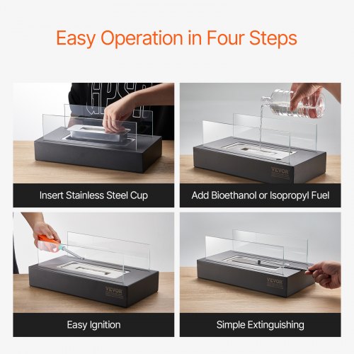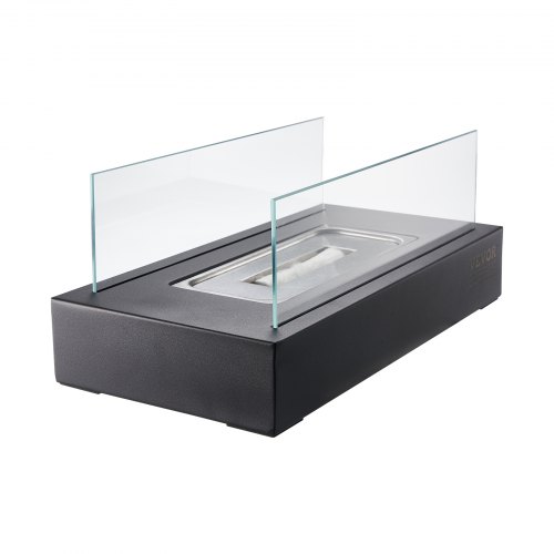 VEVOR Feuerstelle, 35x18x14cm Tischkamin aus Metall, Dekoration für drinnen & draußen, Feuerschale für Reinigungsalkohol, Smores-Maker mit Glas, für Terrasse & Balkon mit Feuerlöscher, quadratisch