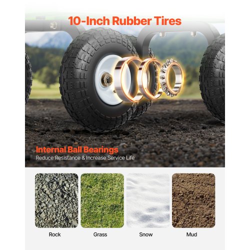 VEVOR Bollerwagen 300 kg, Transportwagen, Gartenwagen, Gerätewagen, Handwagen aus Metall für den Außenbereich mit Reifen, abnehmbaren Seitenteilen aus Netzmaterial & um 180° drehbarem Griff