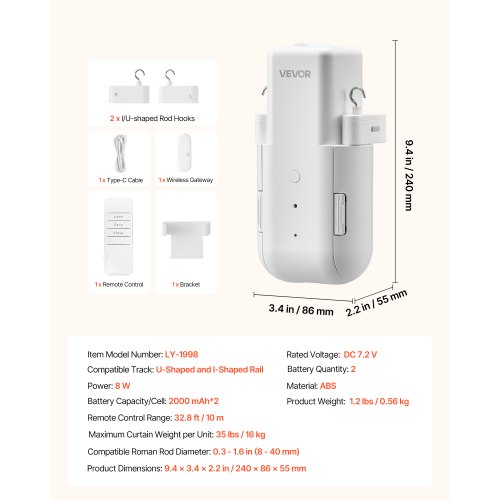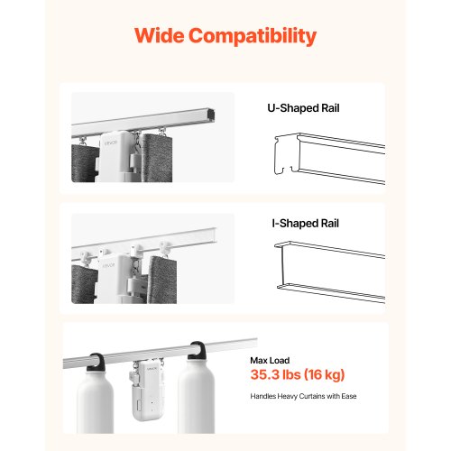 VEVOR automatischer Vorhangöffner (Steuerung über App & Fernbedienung) elektrischer Gardinenöffner, kompatibel mit Alexa & Google Home, mit Lautlosmodus & Timer, für U-förmige/I-förmige Schienen