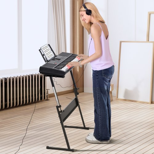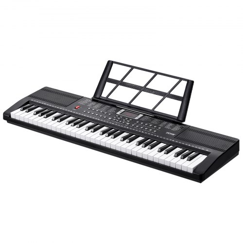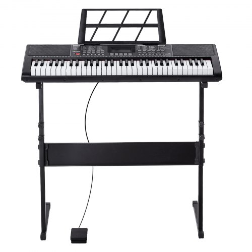 VEVOR 61-Tasten-Digitalklavier, beleuchtete Tasten, tragbares elektrisches Klavier mit verstellbarem Ständer, 600 Töne, 500 Rhythmen, integrierte Lautsprecher, Sustain-Pedal, Kopfhörer, Mikrofon, USB-MIDI für Anfänger