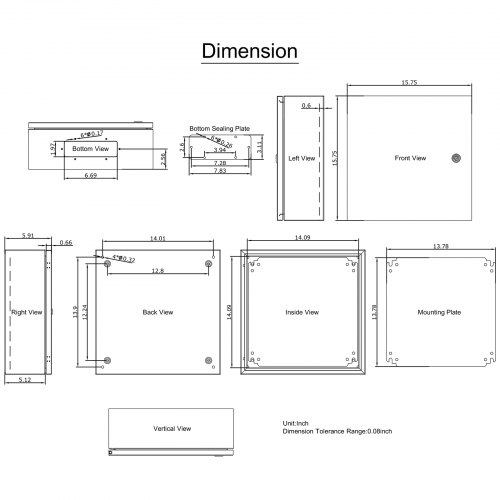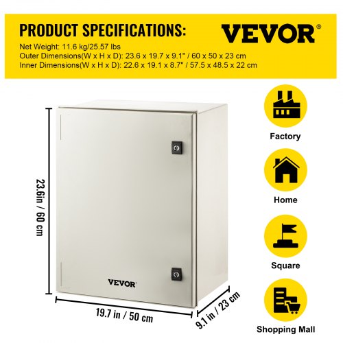 VEVOR Schaltschrank NEMA-Industriegehäuse, 50 x 50 x 15 cm NEMA 4X-Stahl-Verteilerschrank, IP66 wasser- und staubdicht, elektrischer Anschlusskasten für den Außen-/Innenbereich, mit Montageplatte