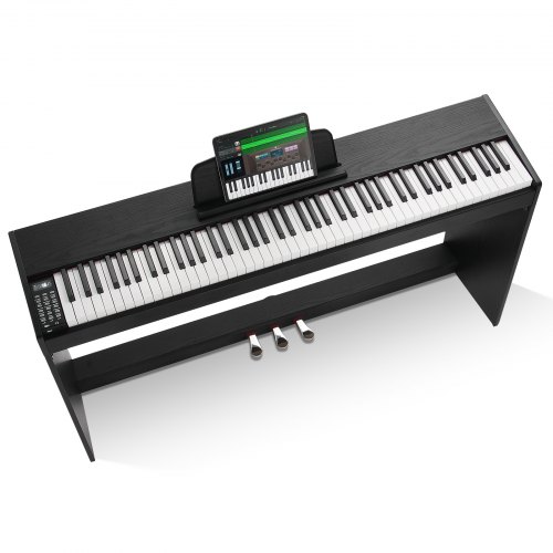 VEVOR Digitales Klavier mit 88 Tasten, halbgewichtete Tasten, tragbares elektrisches Keyboard-Piano-Set in voller Größe mit 1000 Tönen, integrierten Lautsprechern, Sustain-Pedal, Kopfhörern, Bluetooth, MIDI, USB für Anfänger