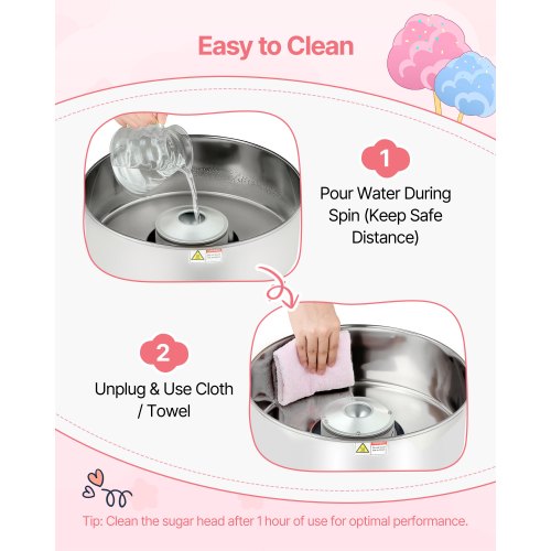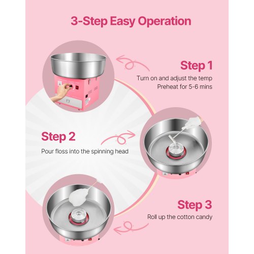VEVOR Elektrische Zuckerwattemaschine, 1 kW Zuckerwattegeräte, Kommerzielle Zuckerwattemaschine mit Edelstahlschüssel & Zuckerlöffel, Perfekt für Kindergeburtstage zu Hause, Familienfeiern (Rosa)