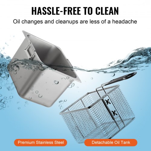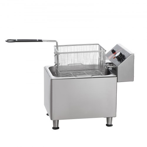 VEVOR kommerzielle Fritteuse, 3000 W elektrische Aufsatzfritteuse mit Korb, 5,9 L Einzelölfritteuse, verdickter Edelstahl, Zeit- & Temperaturkontrolle, für Küche Restaurant Café Restaurant, Silber