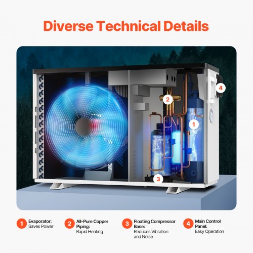 VEVOR Elektrische Pool-Wärmepumpe, 1,48–7,11 kW Heizleistung, energiesparende Poolheizungen mit variabler Frequenz für 15–30 m³ Aufstellpools, Heiz- und Kühlpool-Warmwasserbereiter