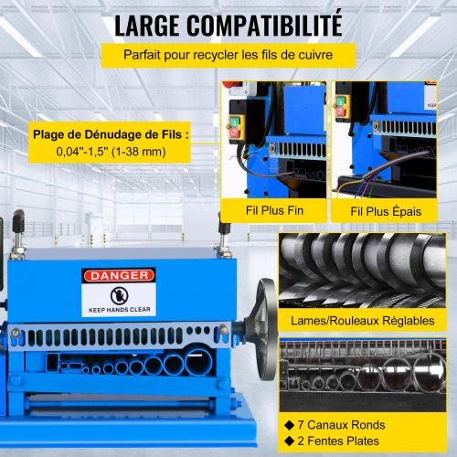 VEVOR Abisoliermaschine 370 W Elektrische Kabelschälmaschine für Kupferschrott Abisolierdurchmesser 1,5-38 mm, Abisoliergeschwindigkeit 30 m / min, Klingendicke 2,8 mm, 11 Kanäle, 10 Klingen, 25 kg