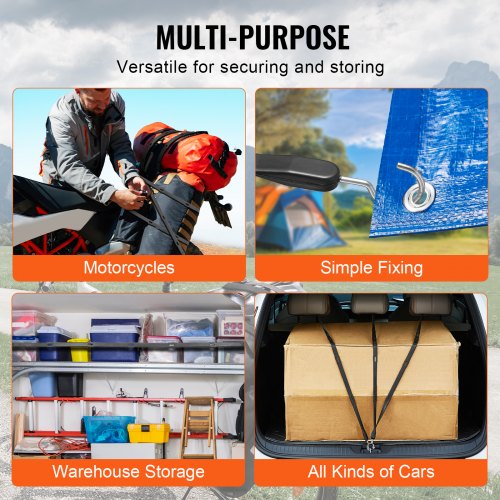 VEVOR 32-teiliges Bungee-Seile-Sortiment, 8 mm robuste Bungee-Gurte mit A3-Stahlhaken, einschließlich 10", 24", 32", 40", 48", Bungee-Seile-Set mit tragbarer Aufbewahrungstasche, 4 Clips und Baldachin-Bindern