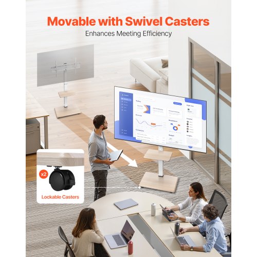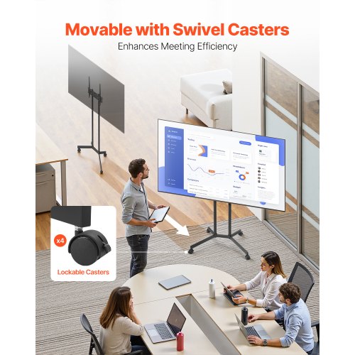 VEVOR TV Ständer mit Rollen Universal 615–670 mm Höhenverstellbar, 75 x 75 mm, 400 x 400 mmm 41 kg Belastbar Bodenständer Standfuß Mobil Wagen Fernsehständer, Stabile Halterung Fernsehtisch
