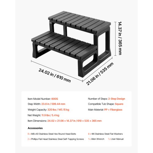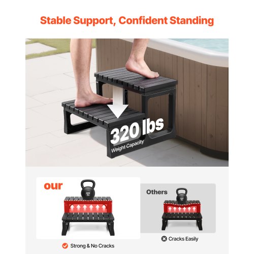VEVOR Badewannenstufe Pooltreppe 2-stufige Außentreppe, 599,44 mm breite PP-Leiter für oberirdische/aufblasbare Pools mit 145,15 kg Tragkraft, vielseitig einsetzbar für Veranda Terrasse Wohnmobile