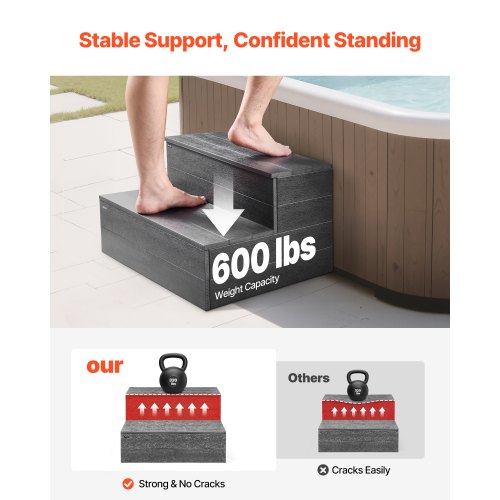 VEVOR Badewannenstufe Pooltreppe 2-stufige Außentreppe, 635 mm breite HIPS-Leiter für oberirdische/aufblasbare Pools mit 272,16 kg Tragkraft, vielseitig einsetzbar für Veranda Terrasse Wohnmobile