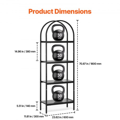 VEVOR Bücherregal Metall, 4-stöckiges gewölbtes Industrie Bücherregal, kleines Vintage-Aufbewahrungsbücherregal mit offenen Regalen, freistehendes Ausstellungsregal Lagerregal, für Wohnzimmer