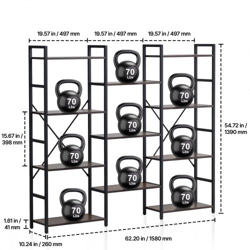 VEVOR Bücherregal aus Metall, 14-stöckiges rechteckiges Industrie-Bücherregal, großes rustikales Aufbewahrungsregal mit offenen Regalen, freistehendes Ausstellungsregal Lagerregal, für Wohnzimmer