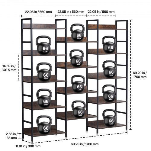 VEVOR Bücherregal aus Metall, 11-stöckiges rechteckiges Industrie-Bücherregal, großes rustikales Aufbewahrungsregal mit offenen Regalen, freistehendes Ausstellungsregal Lagerregal, für Wohnzimmer