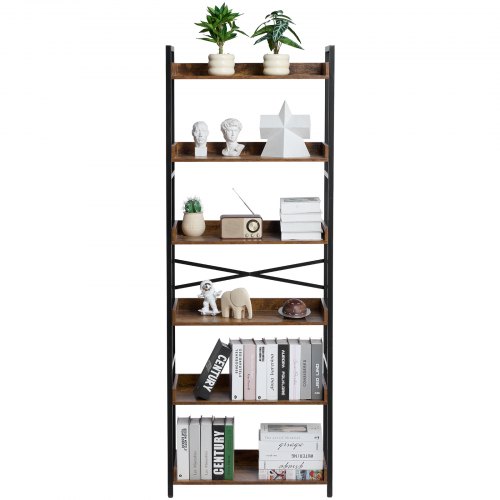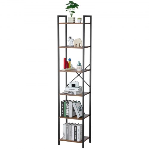 VEVOR Bücherregal aus Metall, 6-stöckiges rechteckiges Industrie-Bücherregal, rustikales Aufbewahrungsregal mit offenen Regalen, freistehendes Ausstellungsregal Lagerregal, für Schlafzimmer