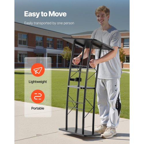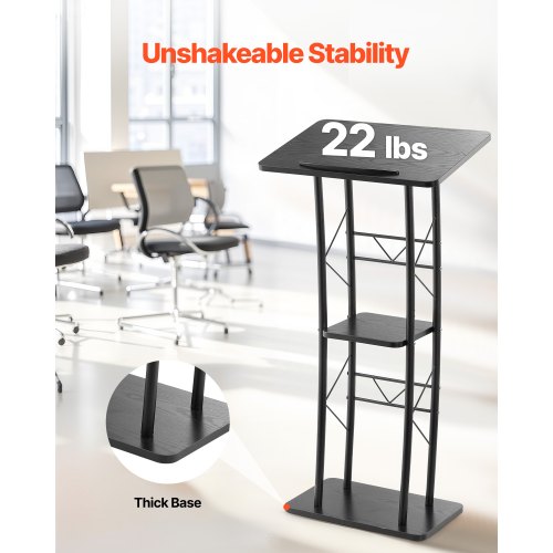 VEVOR Rednerpultständer Metall-Rednerpult (118 cm Höhe), gebogenes Stehpult mit breiter Lesefläche & offenem Ablagefach & Getränkehalter, für Klassenzimmer Hochzeiten Konferenzen Reden