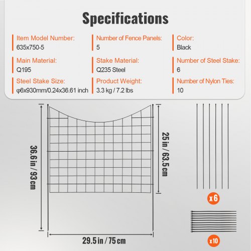 VEVOR 5er-Set Dekorativer Gartenzaun 75x93cm Metallzaun aus Kohlenstoffstahl Steckzaun 6,38cm Spike-Abstand Hundezaun Gitterzaun Beetzaun Zaun Metall Zaunelementen inkl. Befestigungsmaterial