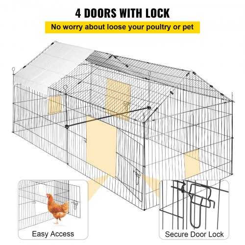 VEVOR Hühnerstall 220x106x104cm Freilaufgehege aus pulverbeschichtetem Eisen Freigehege mit 4 Türen Voliere Kleintierstall Tiergehege Geeignet für Kleintiere wie Hühner Enten Gänse Kaninchen