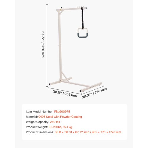 VEVOR Bettgalgen 965x770x1720mm, freistehender Krankenaufrichter bis 113 kg Tragkraft, Bettaufrichter für ältere & behinderte Menschen, ideal für Krankenhäuser, Pflegeheime, häusliche Pflege
