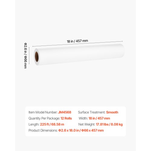 VEVOR Ärzterolle, 457 mm x 68,58 m, Liegenabdeckung (12er-Pack), Einweg Liegenrolle, Medirolle ideal für Spas, Kindertagesstätten, Ärzte, Chiropraktiker, Untersuchungs- & Massagetische, weiß
