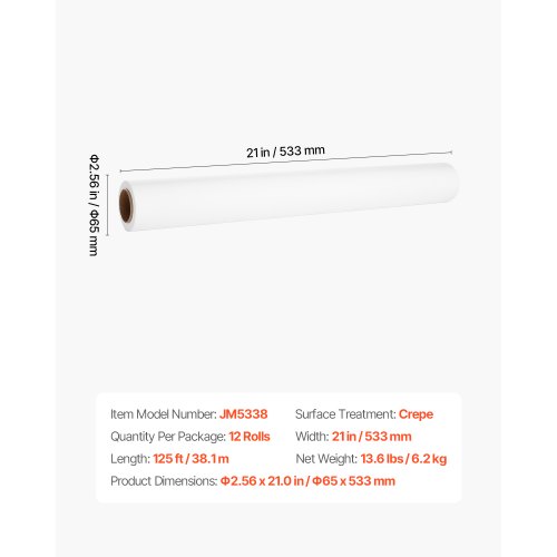 VEVOR Ärztekrepp, 533 mm x 38,1 m, Liegenabdeckung (12er-Pack), Einweg Liegenrolle, Ärzterolle ideal für Spas, Kindertagesstätten, Ärzte, Chiropraktiker, Untersuchungs- & Massagetische, weiß