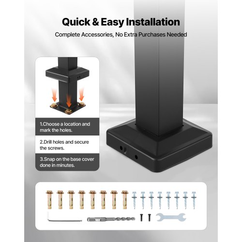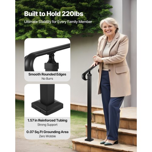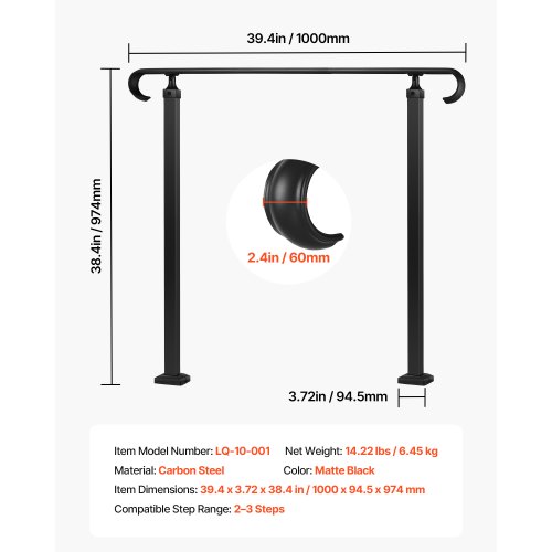 VEVOR Handlauf für Außentreppen, 2–3 Stufen, höhenverstellbar, Übergangshandlauf aus Karbonstahl mit Montagesatz, Außenhandlauf für Stufen, Beton- oder Holztreppen, Veranda, Mattschwarz
