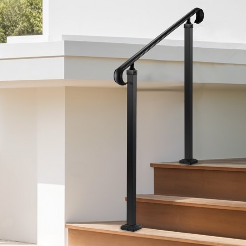 VEVOR Handläufe für Außentreppen, 1–2-stufiges Treppenhandlauf-Set, Übergangsgeländer aus Karbonstahl mit Montagesatz, Treppengeländer für Senioren, Betonstufen & Veranda & Deck, schwarzes Vierkantrohr