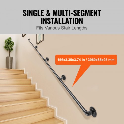 VEVOR 3x Retro Wasserrohr Handlauf 270cm Geländer Retro Industrie Kohlenstoffstahl 4x Wandhalterungen Vintage Wandhalterung Treppe 200kg Tragfähigkeit Geeignet für Handläufe im Innen-/Außenbereich