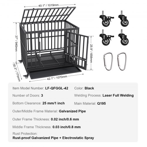 VEVOR Hundekäfig 107x77x94cm Hundebox aus Rostfreiem verzinktem Stahlrohr mit elektrostatischer Lackierung Hundegitterbox mit 3 Türen und abnehmbarer Auffangschale Hundetransportbox Transportkäfig