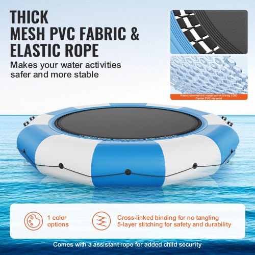 VEVOR Aufblasbarer Wassertrampolin Leiter, Wasserdichte, Abriebfeste, Langlebige Wassertrampoline 4,57 m Großen Sprungfläche, Sprungplattform-Wasserpark Pool Trampolin, 360 kg Tragfähigkeit Blau Weiß