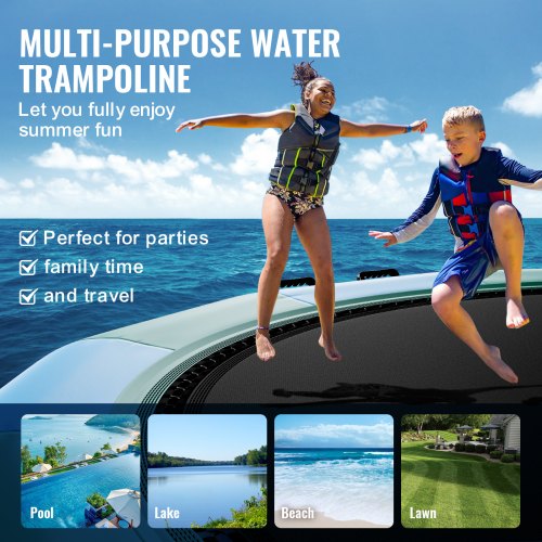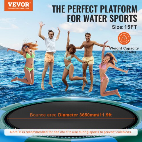 VEVOR Aufblasbarer Wassertrampolin Leiter, Wasserdichte, Abriebfeste, Langlebige Wassertrampoline 4,57 m Großen Sprungfläche, Sprungplattform-Wasserpark Pool Trampolin, Spielzeuge Blau & Grün