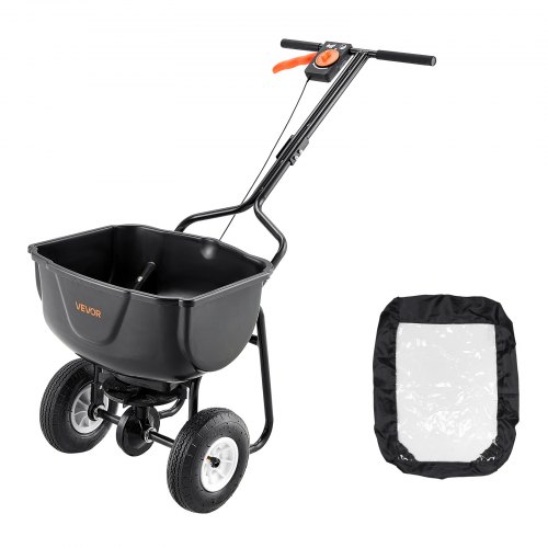 VEVOR 36,29kg Dünger Streuwagen Saatgutstreuer mit 12-Zoll-Rädern, Stahlspießbelüfter Düngerstreuer, Gartensämaschine & Salzstreuer, für Wohngebäude, Bauernhöfe, Schwieriges Gelände Schwarz
