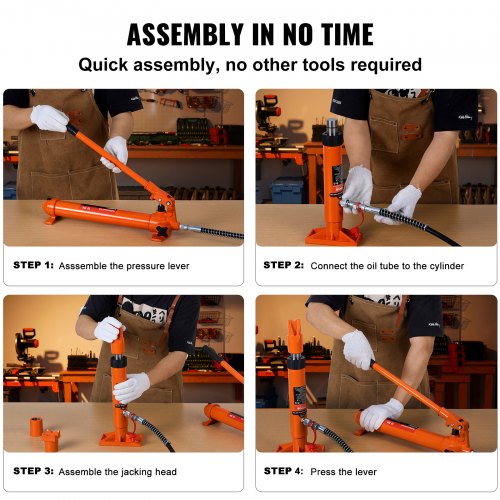 VEVOR Hydraulikzylinder Bausatz, tragbarer hydraulischer Wagenheber 10 t, mit 1,4 m Ölschlauch, Autokarosserierahmen-Reparaturset mit Aufbewahrungskoffer für Autoreparatur, Lkw, Bauernhof, Orange