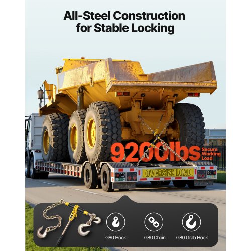 VEVOR Ratschenspanner mit Zurrketten G80 10 mm x 62 cm, 2er-Set, Tragkraft 4173 kg, Transportkettenbefestigungen Kompatibel mit Ketten 10-12,7 mm zur Sicherung von Ladungen, LKW-Anhänger mit Pritsche