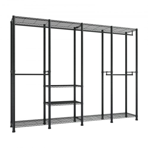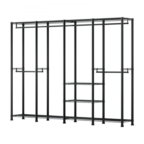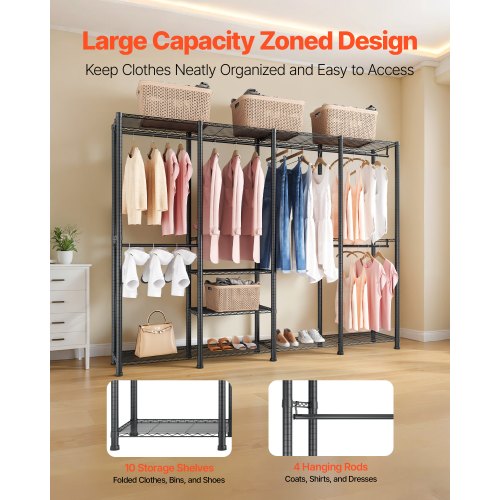 VEVOR Kleiderständer Garderobenständer (verstellbar) mit 4 Kleiderstangen & 499 kg Tragkraft & 10 Regalen, robuster offener Kleiderschrank für Schlafzimmer Bekleidungsgeschäft Garderobe Flur