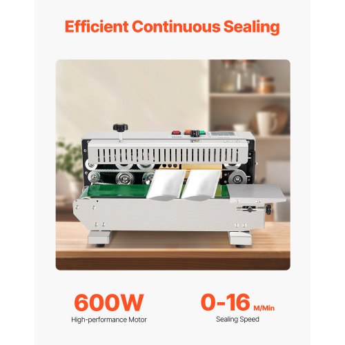 VEVOR Kontinuierliche Beutelband-Versiegelungsmaschine, 0,24-0,47 Zoll/6-12 mm Siegelbreite, Horizontale Bandsiegelmaschine mit digitaler Temperaturregelung, Beutelsiegelgerät aus Edelstahl für 0,02-0,8 mm Plastikbeutelfolie
