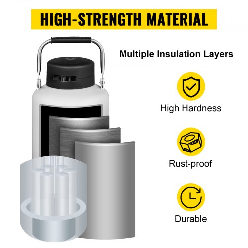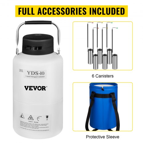 VEVOR Stickstoffbehälter 10 L, Liquid Nitrogen Container aus Luftfahrtaluminium, Liquid Nitrogen Tank mit Abschließbarer Abdeckung, PU Stöpsel, Flüssigstickstoff Tank 6 Kanister, für Medizin
