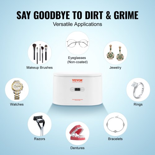 VEVOR Ultraschallreiniger Ultraschall Edelstahl-Reinigungsgerät 30 W, 650 mL Ultraschallreinigungsgerät mit Digitaler Anzeige, Weiß Fünf Verfügbare Modelle für Schmuck, Brillen, Uhren usw.