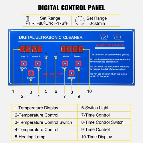 VEVOR Ultraschallreinigungsgerät 2L Ultraschallreinigungsmaschine 60W Ultraschallreiniger 0-30 Minuten Ultraschallgerät RT-80℃ aus Edelstahl 316 & 304 Geeignet zur Reinigung von Schmuck Brillen Uhren