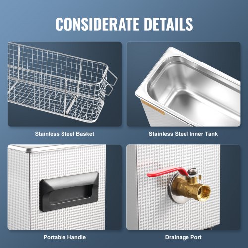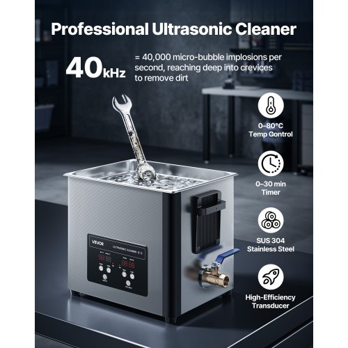 VEVOR 10 L Ultraschallreiniger, professionelle Ultraschallreinigungsmaschine mit Reinigungskorb & Digitalanzeige, 180 W Edelstahl 40 kHz Industrielle Reinigungsmaschine für Teile Vergaser Instrumente