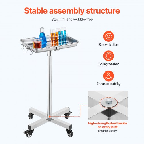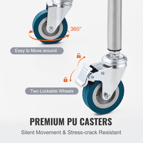 VEVOR Laborwagen aus Edelstahl mit 2 Ebenen, Laborwagen mit 2 Ablagen, mobiler medizinischer Wagen mit 4 leisen Rädern, Laborrollwagen für Labor, Klinik, Krankenhaus, Salon, Golden