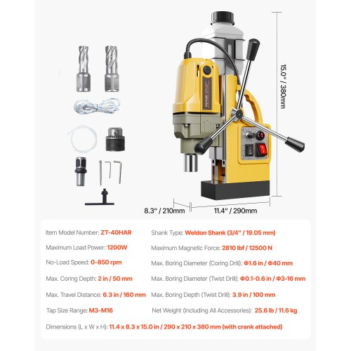 VEVOR Magnetbohrmaschine Kernbohrmaschine 1400 W (40 mm Bohrdurchmesser), 12500 N tragbare elektrische Bohrmaschine, 800 U/min Drehzahl, Bohrmaschine für Metalloberflächen Industrie Heimwerker