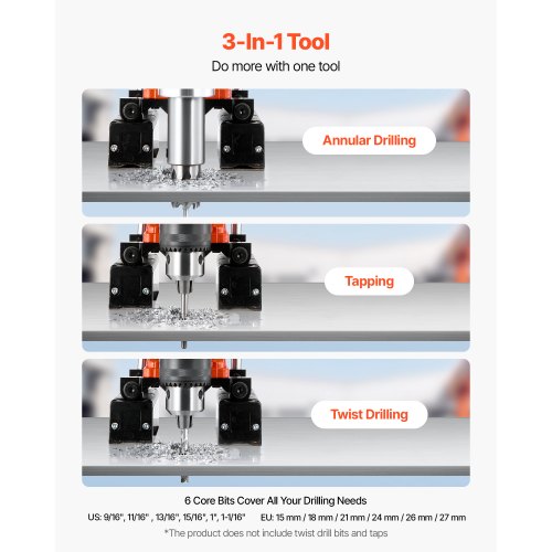 VEVOR Magnetbohrmaschine 1,5 kW 60 mm Bohrdurchmesser 13000 N Leistung, Magnetbohrmaschine mit Morsekegel & einstellbarer Drehzahlen, M3-M16 Gewindeschneiden für Metalloberflächen Heimwerker
