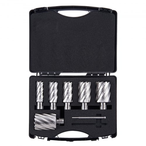 VEVOR Kronenbohrer-Set Metall 6 tlg. Kernbohrer-Satz 50,8 mm Schnitttiefe Ringschneider-Set, aus M2AL-Schnellarbeitsstahl Zubehör für Magnetbohrmaschinen