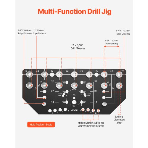 VEVOR Regalstiftlehre und Scharnierlehre Bohrschablone für Schrankbeschläge aus Aluminiumlegierung mit 6,4- und 4,8-mm-Bohrern, Bohrschablone für Schranktüren Bücherregale Kleiderschränke