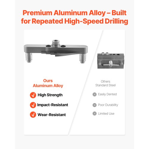 VEVOR Dübellehren-Set selbstzentrierende Dübelbohrlehre für gerade Löcher, Holzverbindungswerkzeug mit 3 Bohrergrößen 6,4/7,9/15 mm, Bohrschablone mit einstellbarer Breite für Holzbearbeitung
