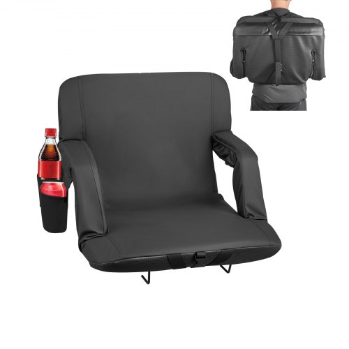 VEVOR Stadionsitz tragbarer Tribünenstuhl mit Rückenlehne & Armlehne, Tribünensitz mit Schultergurt & Getränkehalter & Haken, Stadionstuhl aus 600D Oxford-Gewebe (474,98 mm Gesamtbreite) Schwarz