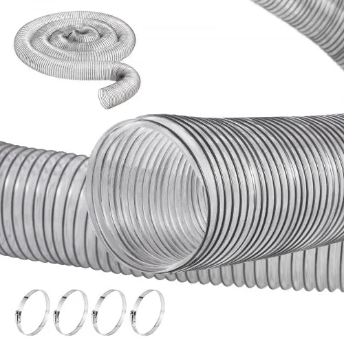 VEVOR Staubsammelschlauch, 2,5 Zoll x 20 Fuß, verdicktes PVC-Material, durchstichfester, flexibler, transparenter Schlauch mit Kohlenstoffstahldrahtspule, 4 x 304 Edelstahlklemmen, für Tischsäge, Bandsäge, Hobel, Abrichthobel