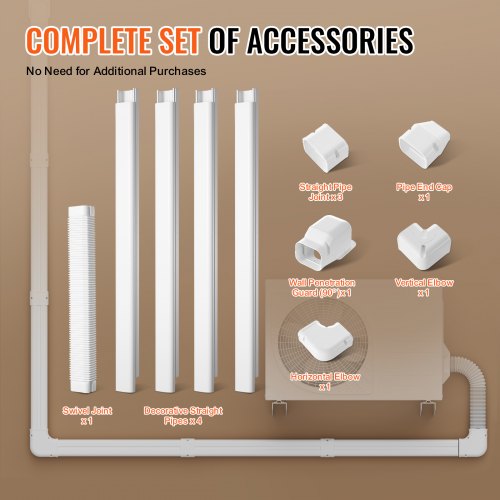 VEVOR Mini-Split-Line-Set-Abdeckung 76,2 mm B 5350 mm L, dekorative PVC-Rohrleitungsabdeckung für Klimaanlage mit 4 geraden Kanälen und vollständigen Komponenten, überstreichbar für Wärmepumpen, weiß