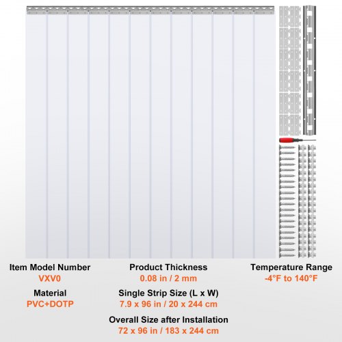 VEVOR Streifenvorhang, 243 cm Höhe x 182 cm Breite, 0,2 cm Dicke, 12 Stück transparenter PVC-Streifen-Türvorhang, Gefrierschrankvorhang, Kunststoff-Türstreifen für begehbare Gefrierschränke, Kühlschränke und Lagertüren, mit 50 % Überlappung